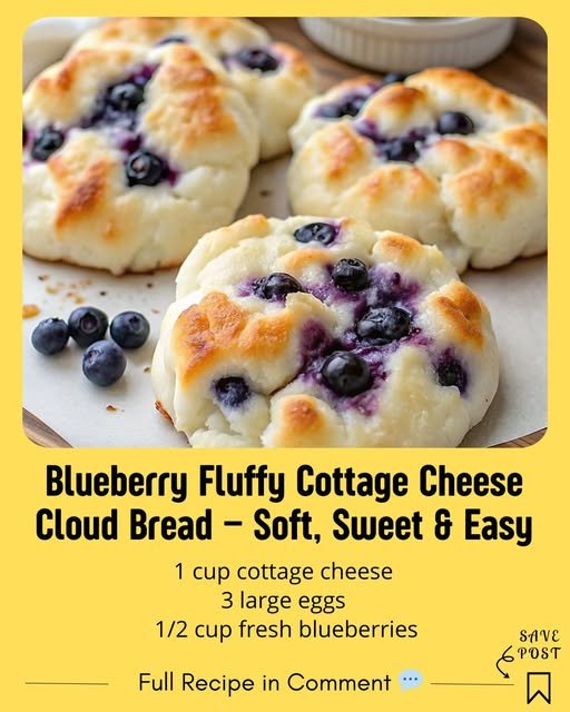 Ah yes! Blueberry Fluffy Cottage Cheese Cloud Bread ☁️🫐 — light, airy, slightly sweet, and high in protein. It’s perfect as a low-carb or gluten-free alternative to regular bread. Here’s a simple recipe: